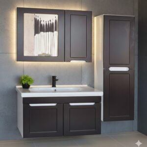 ”Tasarımın ışıkla dansı: Lavin Banyo Dolabı. Modern dikey kanal (fluted) dokusu ve çevresini saran soft LED aydınlatmasıyla Lavin, banyonuzu sıradan bir alan olmaktan çıkarıp huzur veren bir sığınağa dönüştürüyor.”