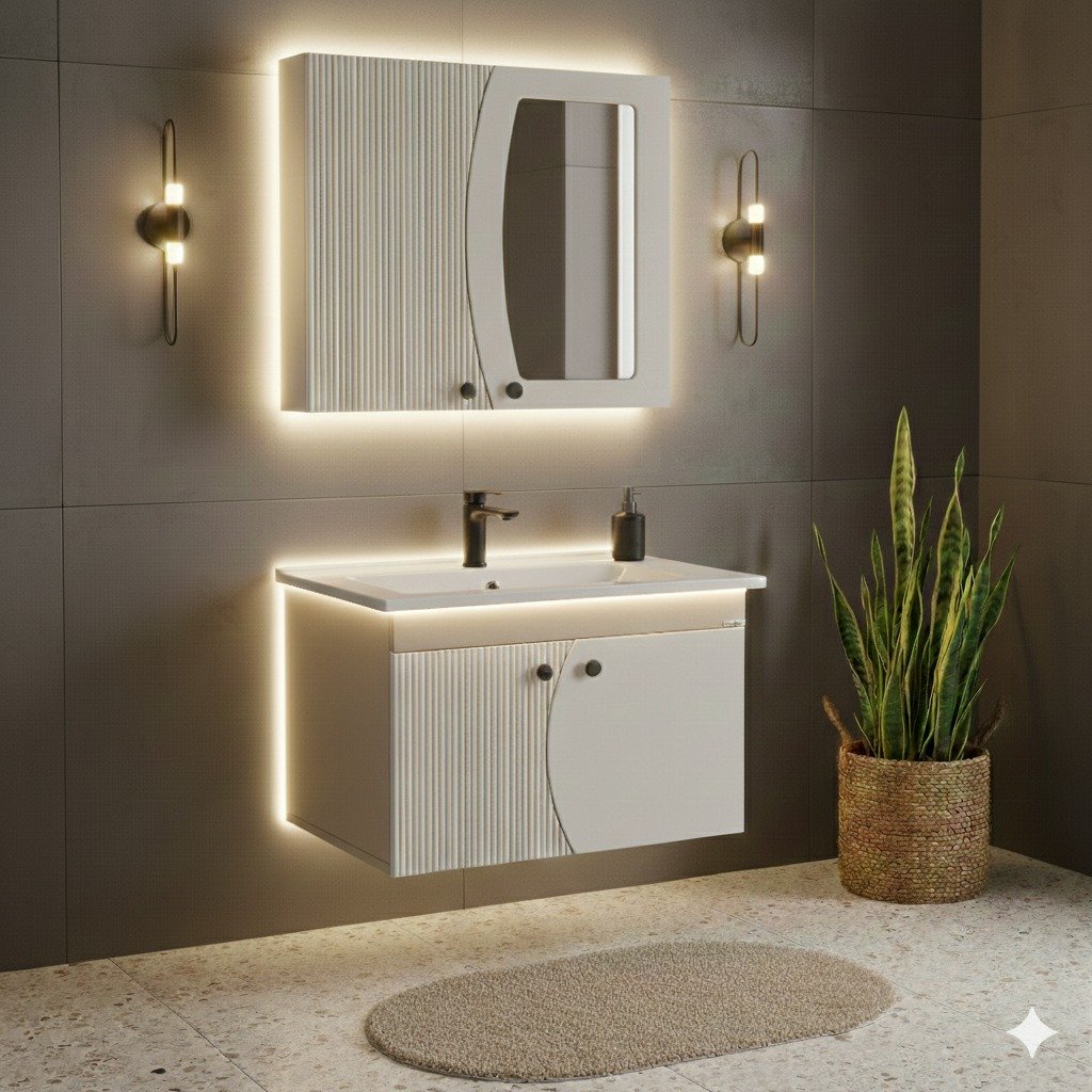 ​"Minimalist şıklık, maksimalist konfor! Kardelen Banyo Dolabı ile her sabah güne ışıl ışıl başlayın. 🌿"